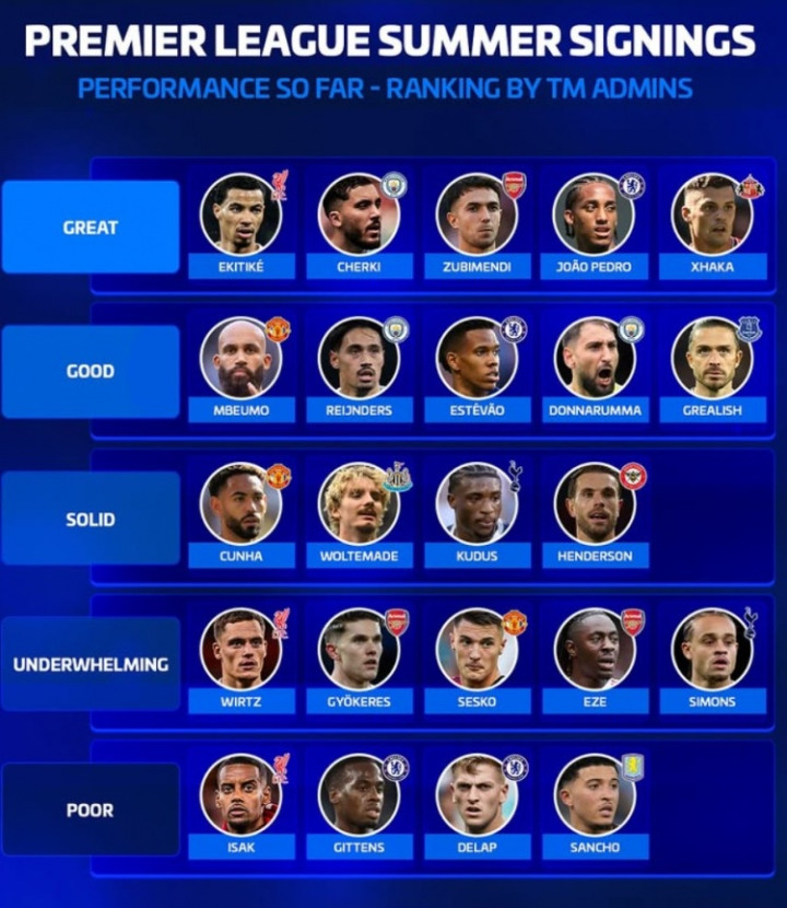 直播吧2月22日讯《转会市场》为去年夏窗的英超引援进行了分档评级,埃基蒂克等5将获评最佳。